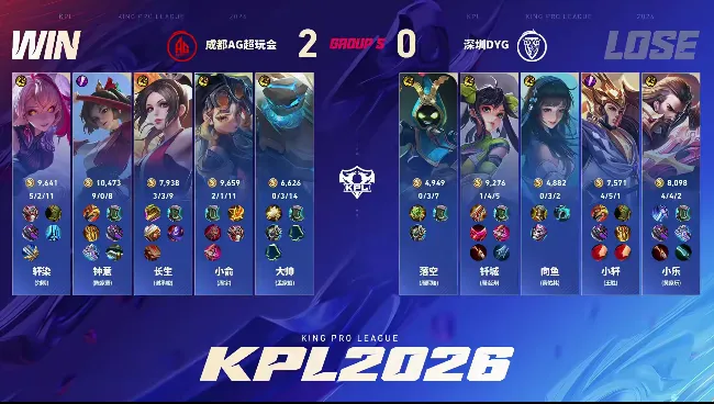 蓝色方:成都AG超玩会 红色方:深圳DYG