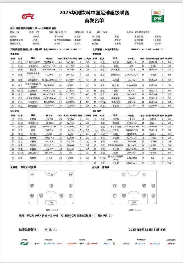 河南vs国安:五外援PK三外援,阿奇姆彭首发,林良铭出战 北京时间9月12日19:35,中超第24轮继续进行,河南队主场迎战北京国安,赛前双方首发阵容公布:双方首发阵容:... 西甲 2025-09-20 128 0